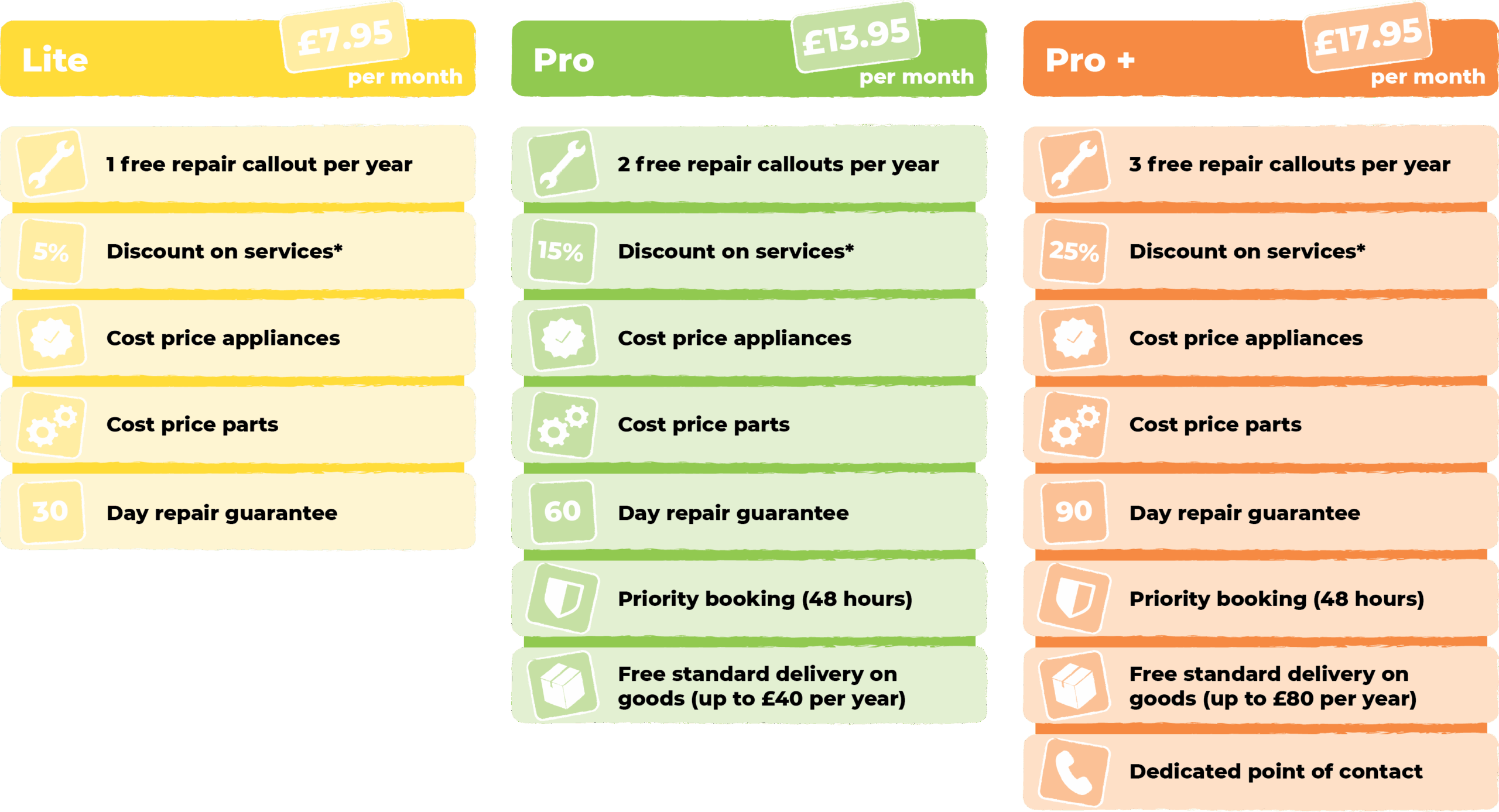 With a membership, you can call 0800 046 7019 and let us know your issue – whether it’s an error code, a maintenance question, or DIY repair advice for your home appliances.